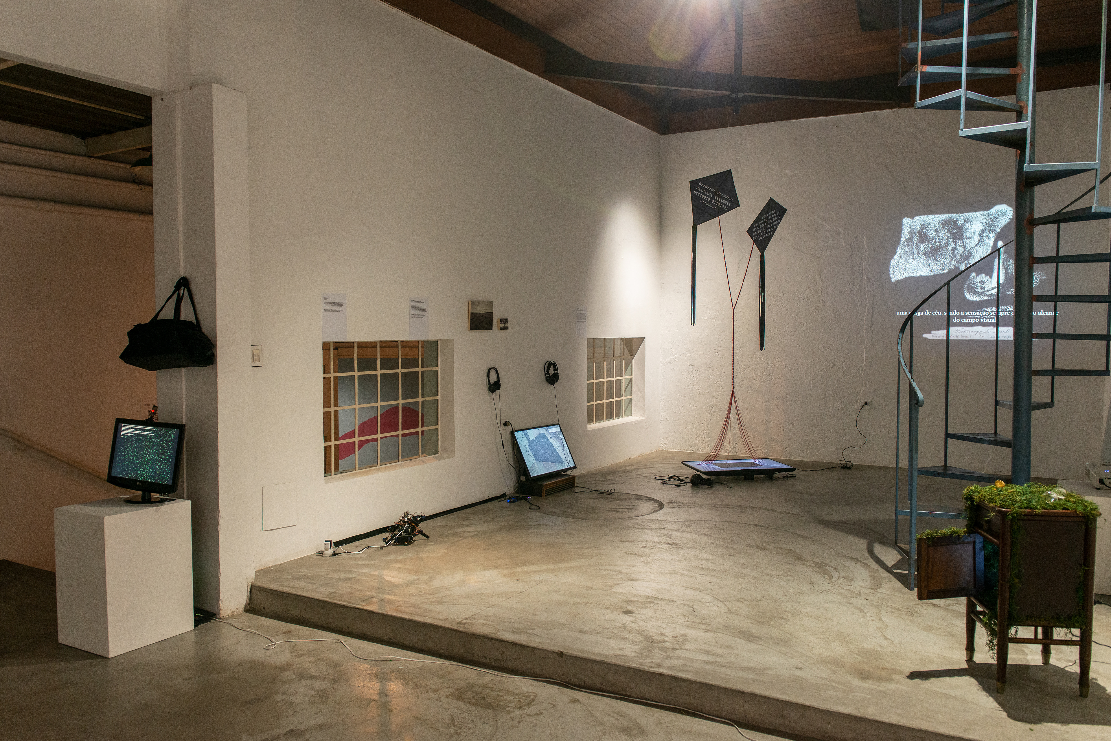 Contamos com uma estrutura física composta por um estúdio com tratamento acústico e uma sala de exposições, onde são realizadas tanto as ações formativas quanto as mostras de conclusão de curso. Dessa forma, investimos no acompanhamento de todo o processo criativo de cada artista, desde a concepção e produção até a montagem e a reflexão sobre a relação espacial dos trabalhos no ambiente expositivo.